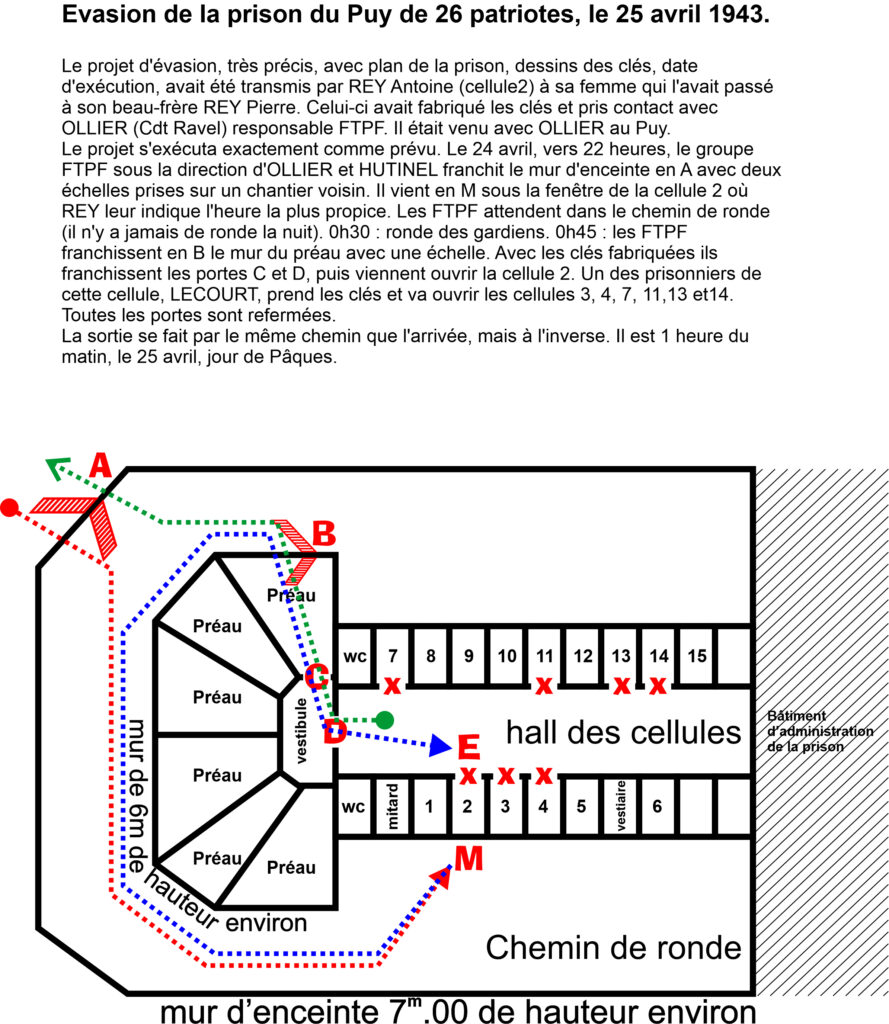 Là, je retrouve des camarades venant d’un peu partout. En novembre, les Allemands occupent la zone sud. Nouvelle vie de prison, et, fin décembre… comme il faut faire de Ia place, avec d’autres camarades (les perpétuités) me voilà transféré un soir de Noël à la prison du Puy en Haute-Loire.