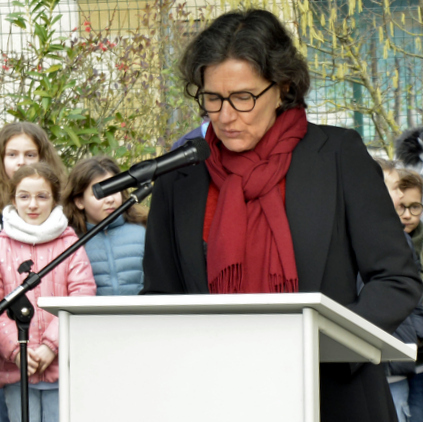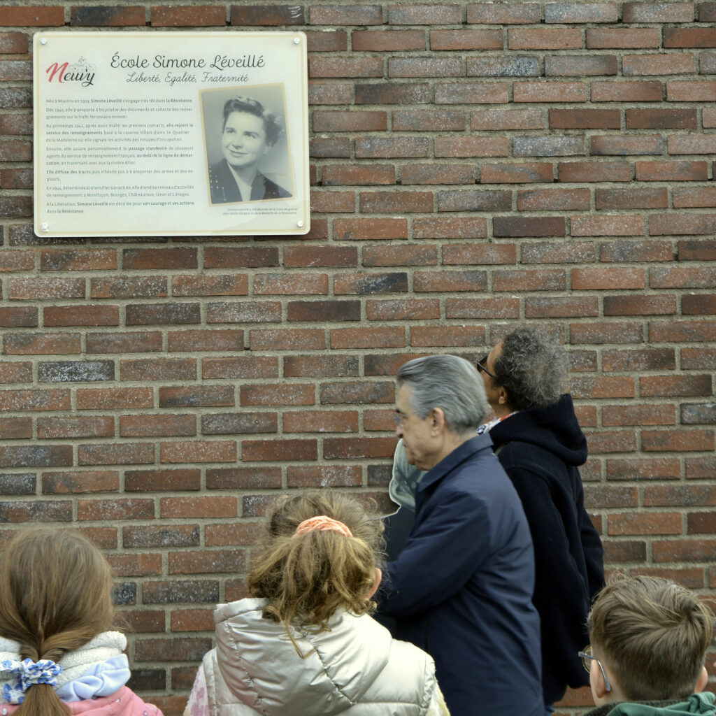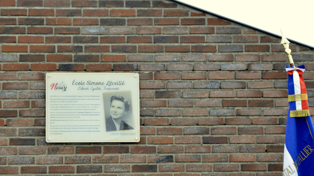 Fruit d’une longue réflexion et de la recherche partagée du nom , c’est l’hommage à la résistante moulinoise Simone Léveillé qui emporta les suffrages. L’hommage a pris corps avec la plaque dévoilée au mur de l’école. Elle rappelle à la fois le parcours exceptionnel de courage de la jeune fille et le visage de l’engagement qui fait d’elle une « marianne » bourbonnaise.