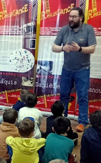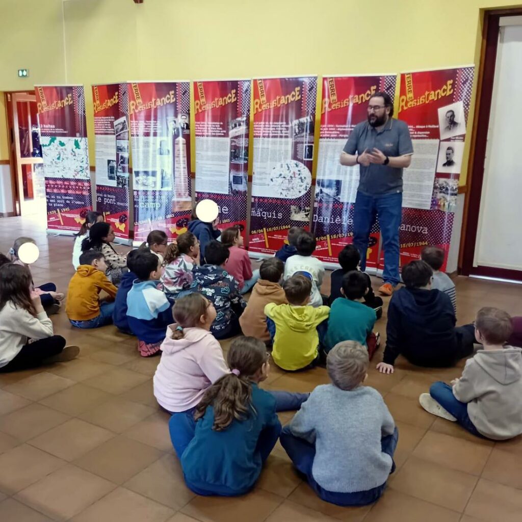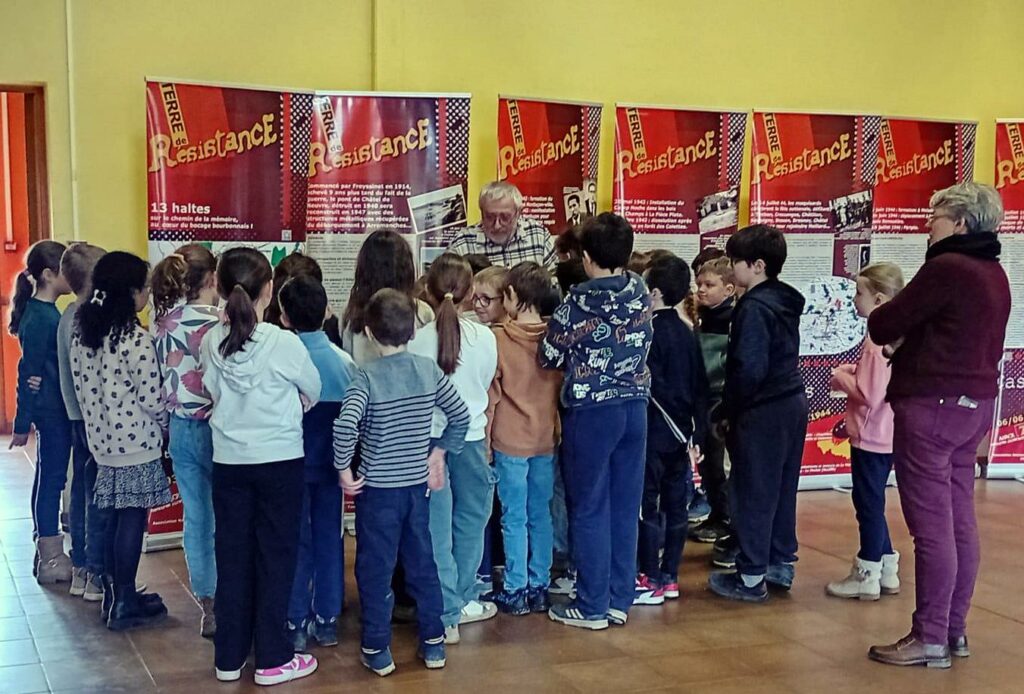 Dans un premier temps le vendredi 29 janvier après-midi a été consacré aux jeunes élèves des classes de CE et CM accueillis dans l’exposition « Terre de Résistance » pour faire écho à leurs travaux sur Simone Léveillé en leur faisant découvrir le parcours d’autres résistants.