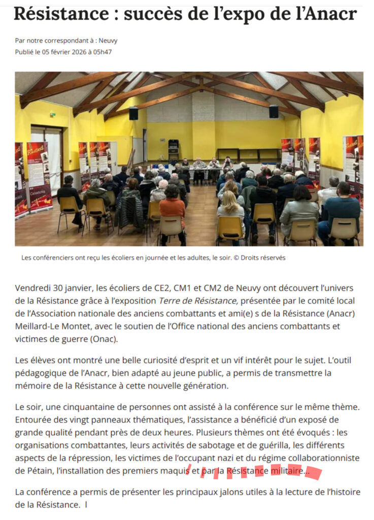 Dans son projet, la municipalité de Neuvy avait sollicité l’accompagnement de l’ANACR. C’est avec un grand plaisir que notre association a répondu à cette sollicitation.